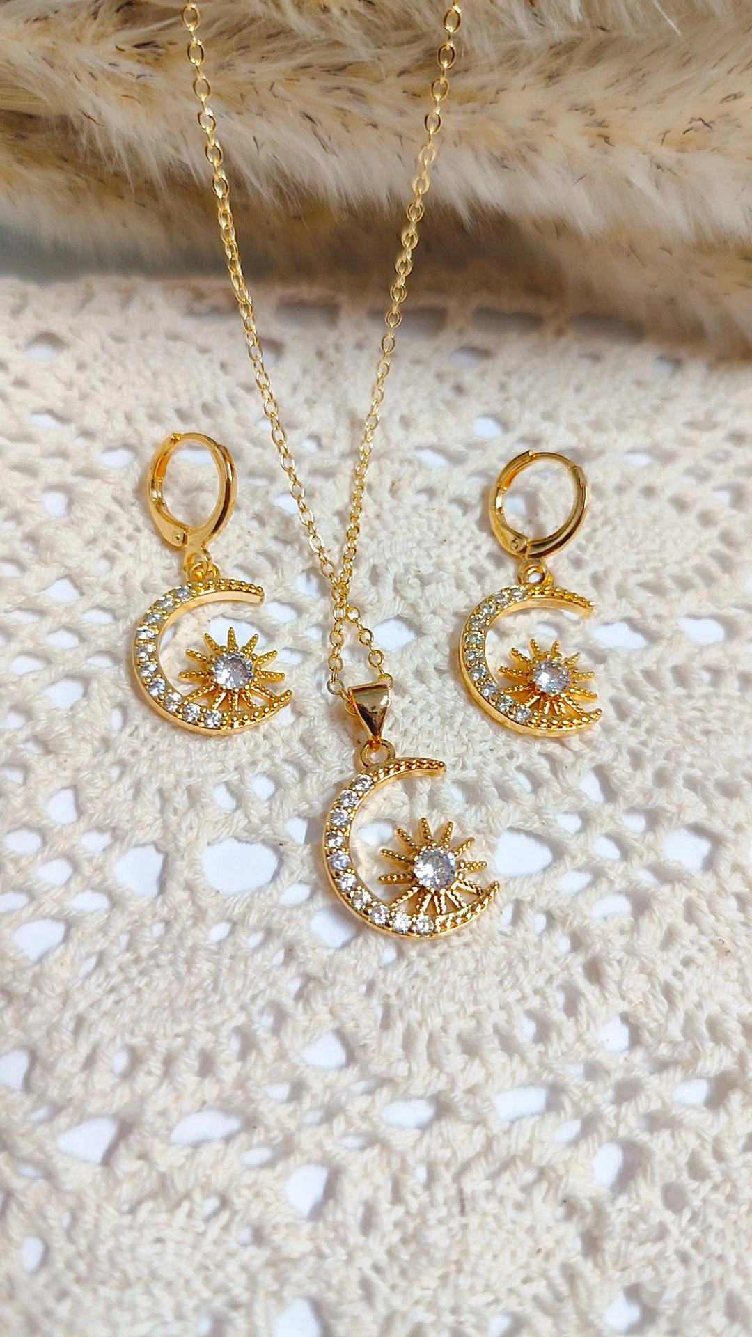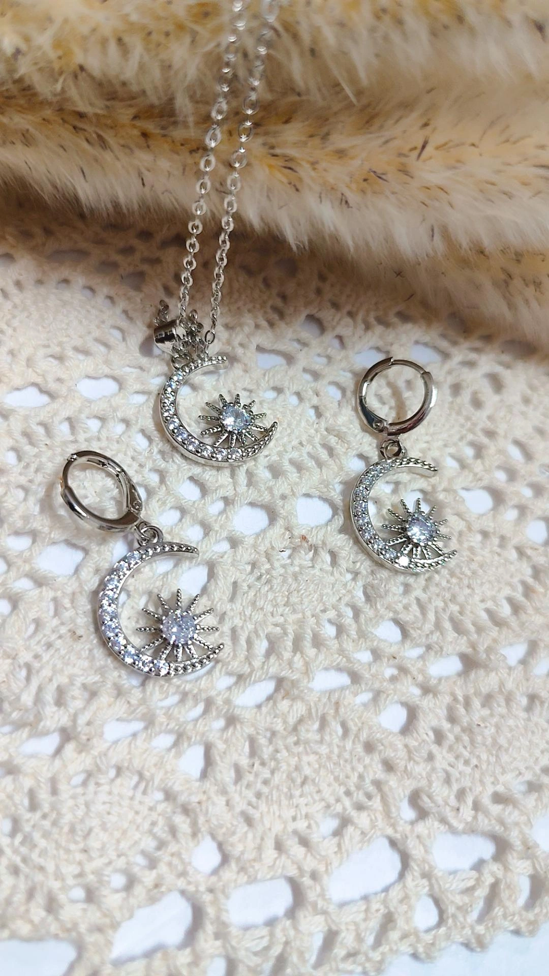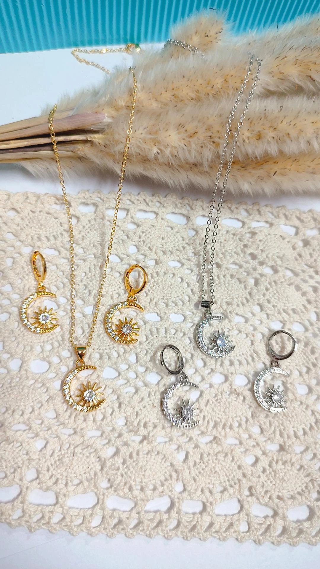 نیم ست رنگ ثابت ماه و خورشید_نیم ست رنگ ثابت قلب_نیم ست طرح طلا و نقره_نیم ست گوشواره گردنبند