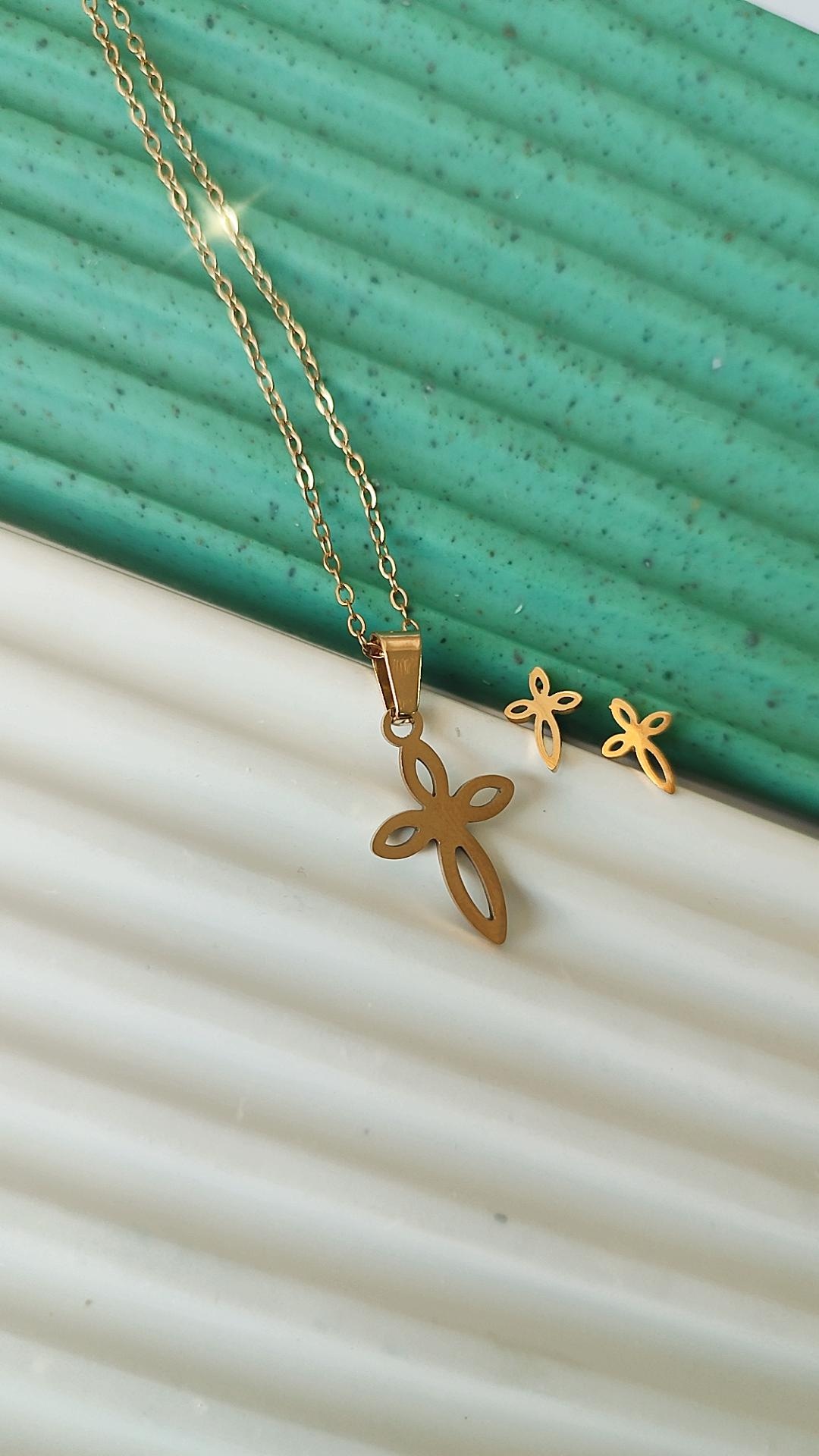 قیمت نیم ست گل گوش و گردنبند ظریف و ریز_رنگ ثابت _گل گوش مار_گل گوش صلیب